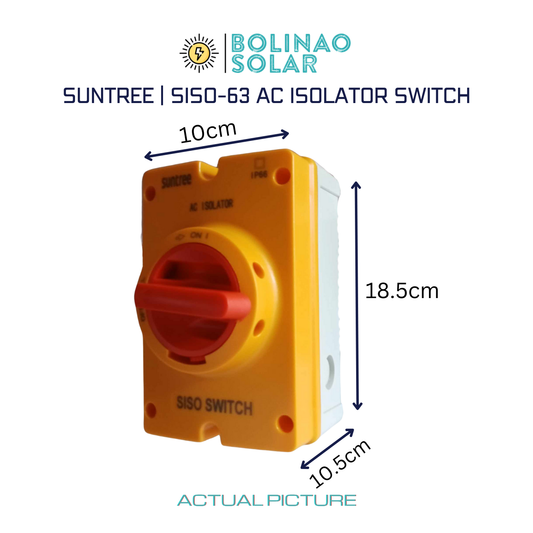 SUNTREE | SISO-63 4P 415V AC ISOLATOR SWITCH 10A/20A/25A/32A/63ARegular price ₱1,009.00 PHPRegular priceUnit price per₱1,441.00 PHPSale price ₱1,009.00 PHPSold out